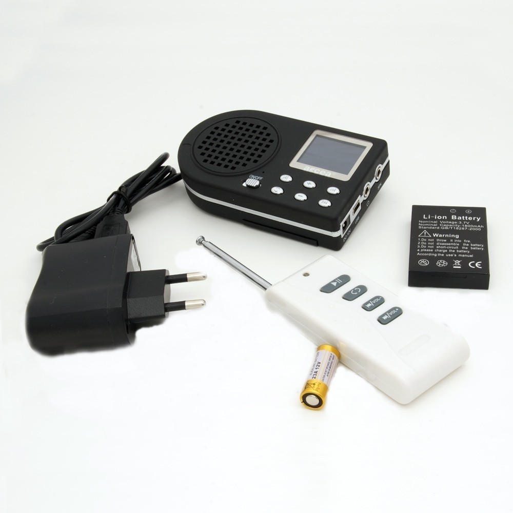 Reproductor de cantos con mando a distancia, con un alcance de 100 m.