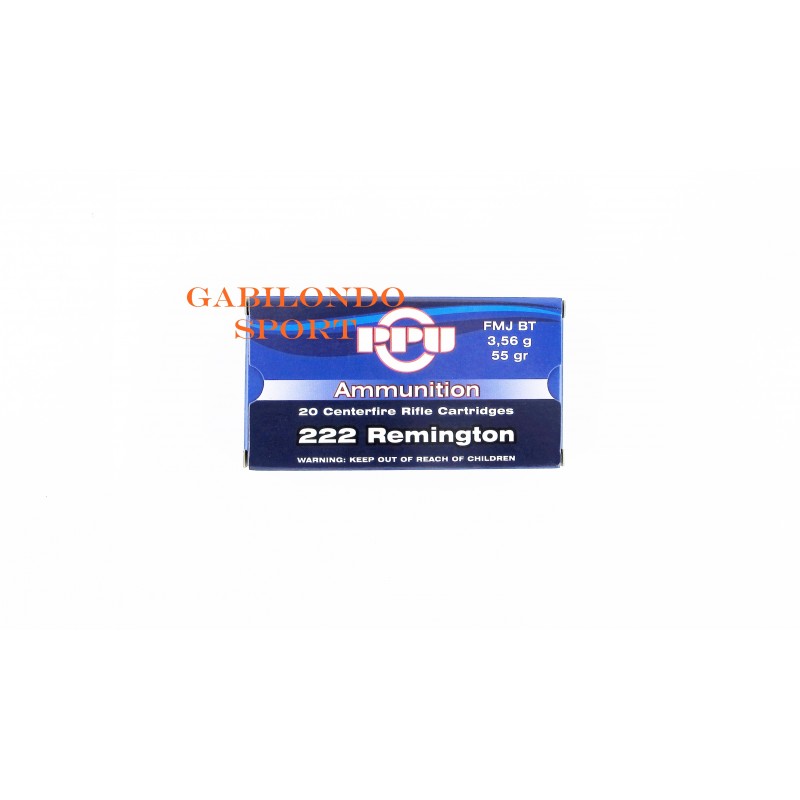 Cartucho PPU Cal.222 Rem con proyectil FMJ BT de 55 gr